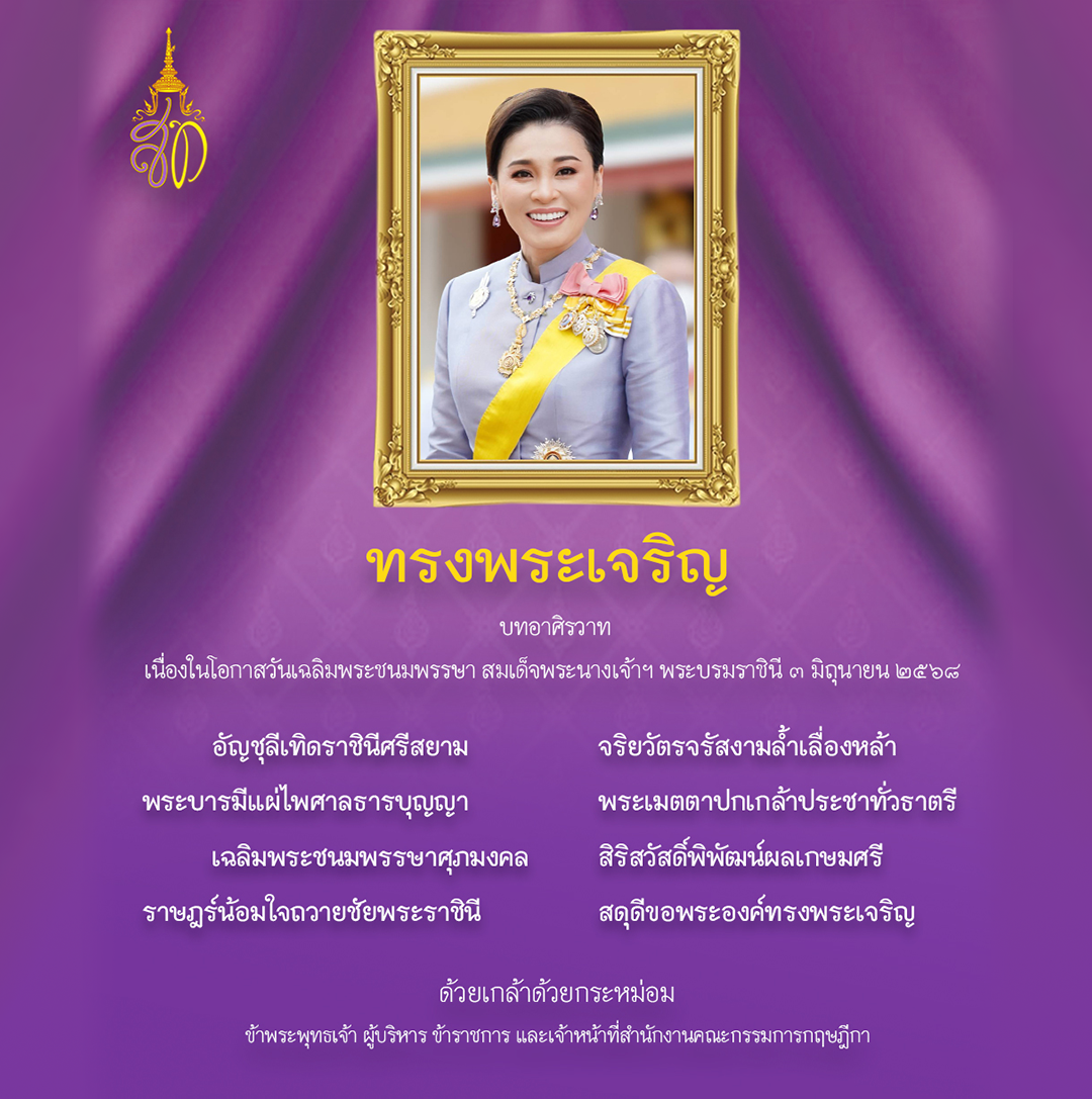 ลงนามถวายพระพรออนไลน์ เนื่องในวันเฉลิมพระชนมพรรษา สมเด็จพระนางเจ้าสุทิดา พัชรสุธาพิมลลักษณ พระบรมราชินี ๓ มิถุนายน